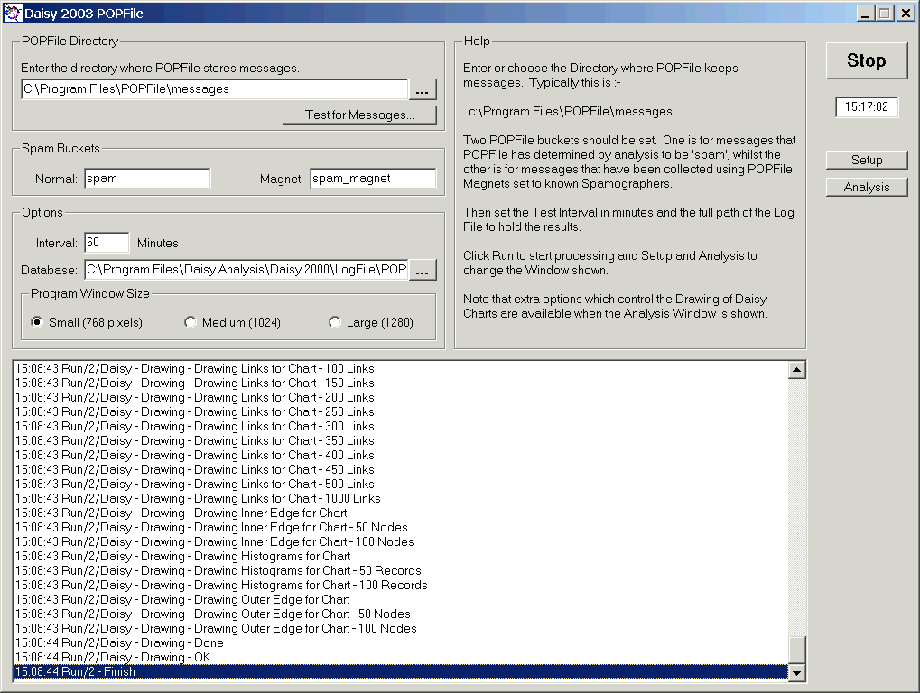Shown is the Setup window for Daisy POPFile, which is typical of the various Daisy Web Tools.