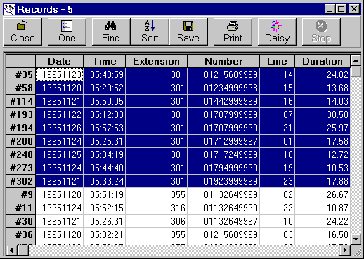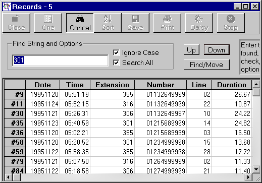 Note 'Find/Move', which selects all records that contains the entered string and moves them to the top of the grid.